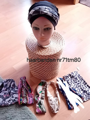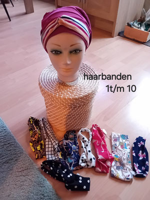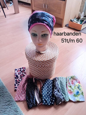 U kunt u eigen combinatie maken met de Mutsjes die ook hier op de site staan ,daar staan al div combinaties ,maar u heeft zelf misschien een ander idee ,alles is mogelijk . er worden regelmatig haarbanden bijgevoegd .